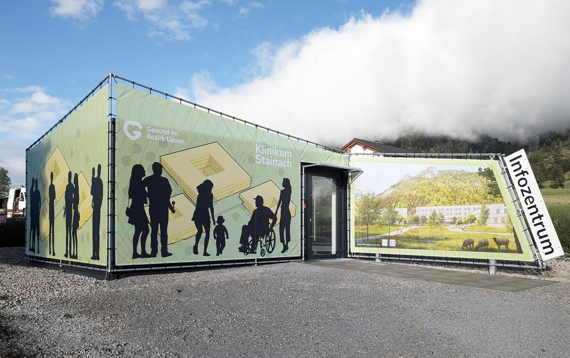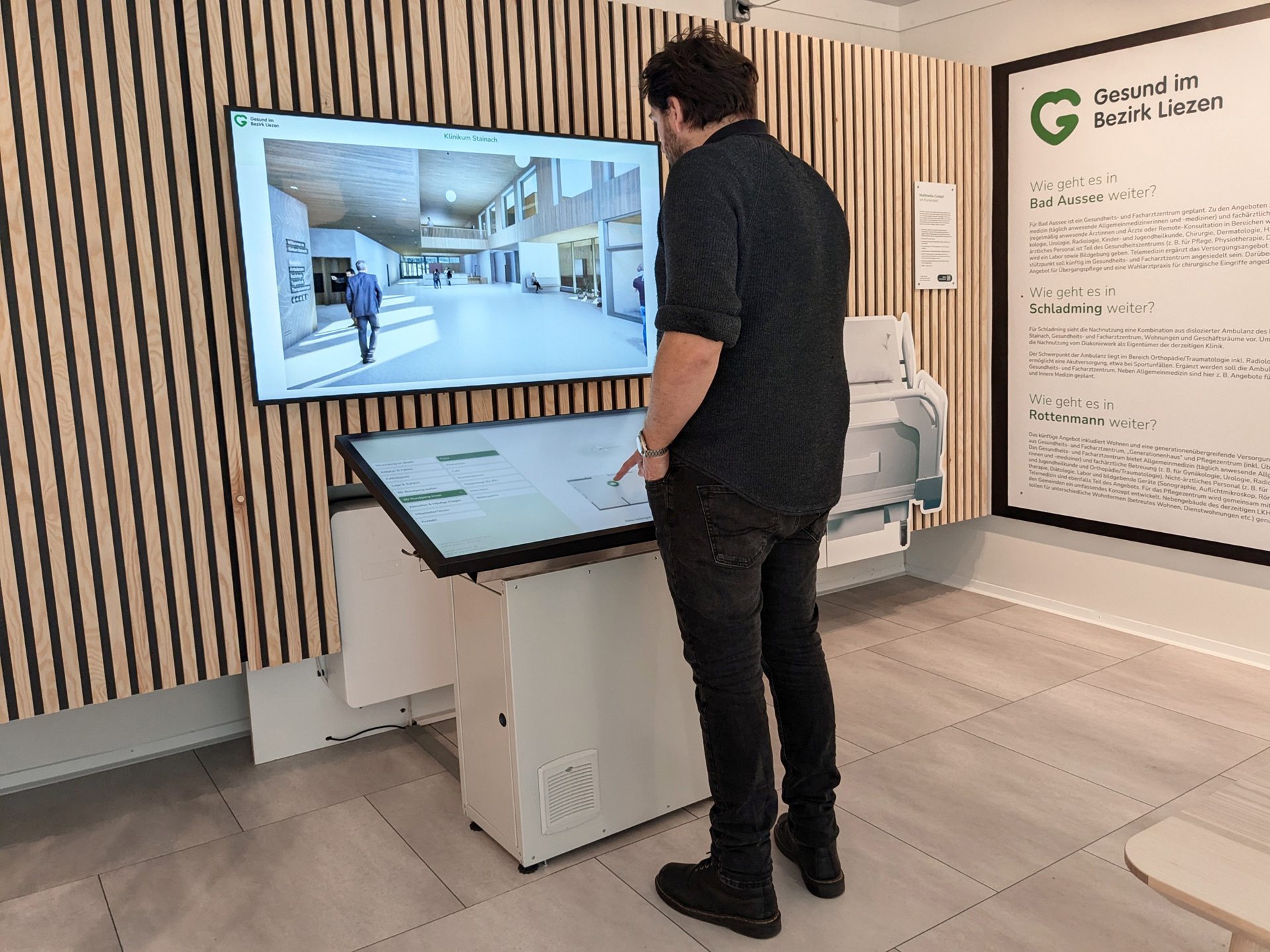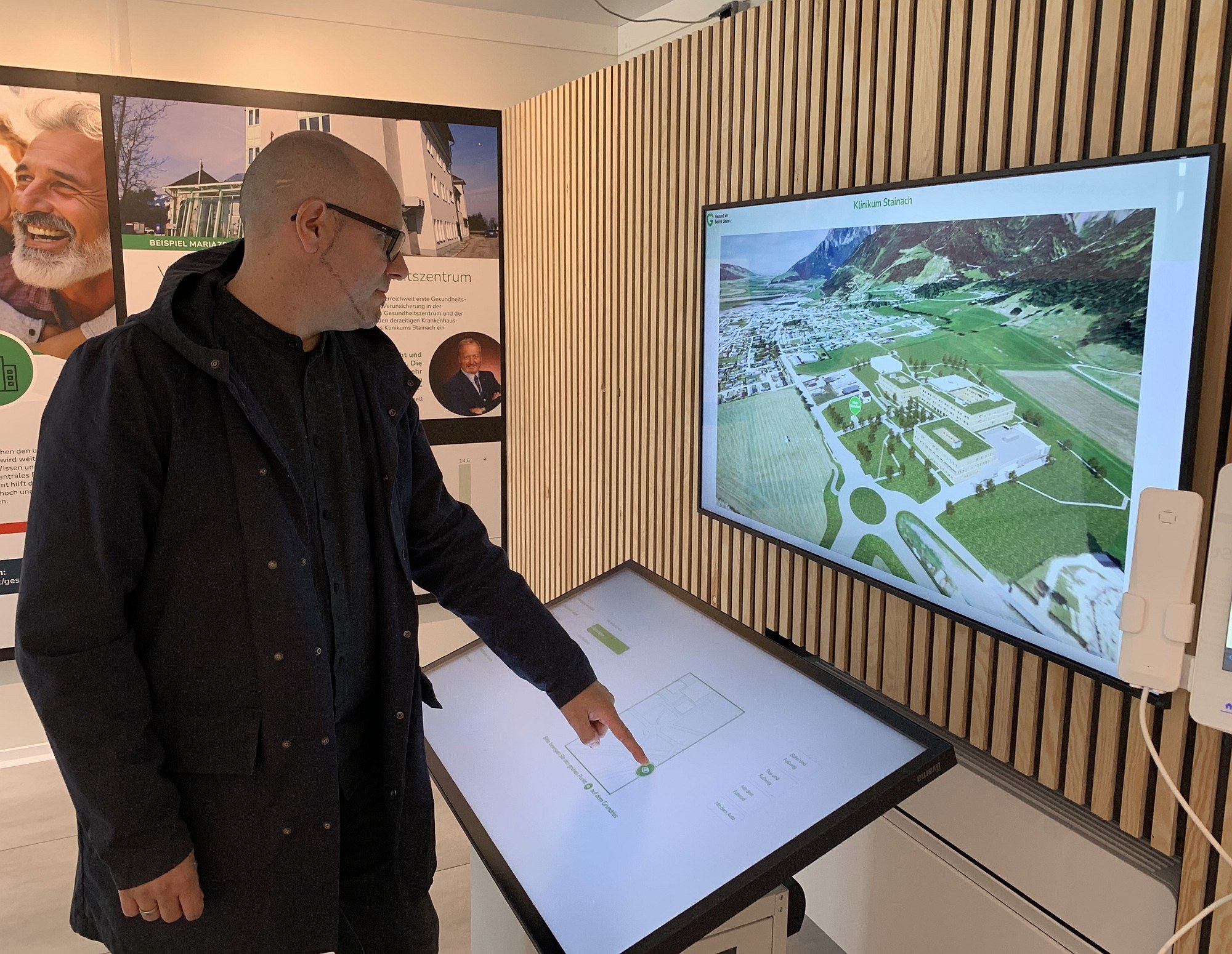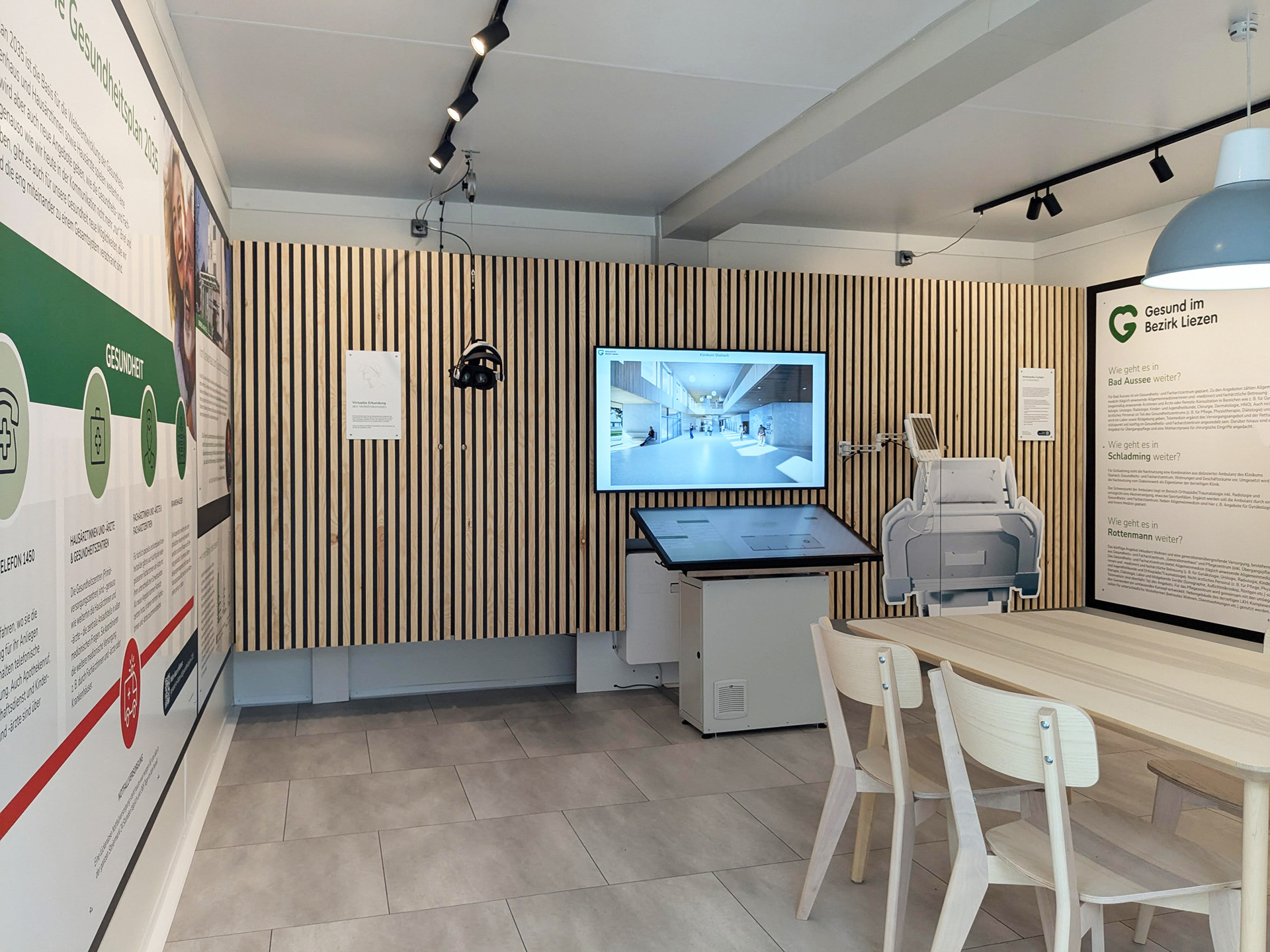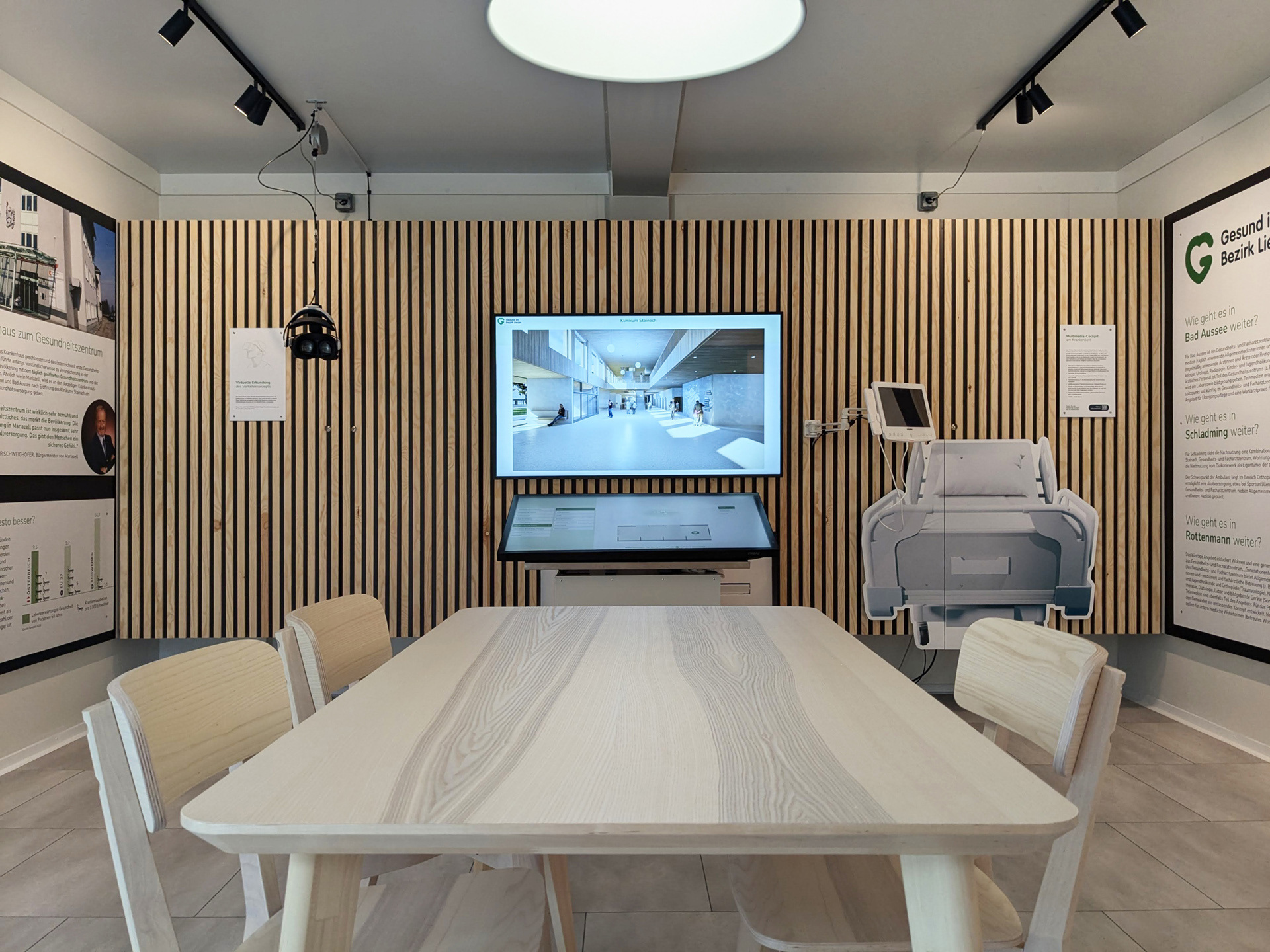 The public can gain an insight into the future hospital. The information centre next to the building site provides an overview of the overall healthcare provision in the Liezen district as well as information on the construction project. The opportunity to take virtual 3D tours rounds off the information on offer.