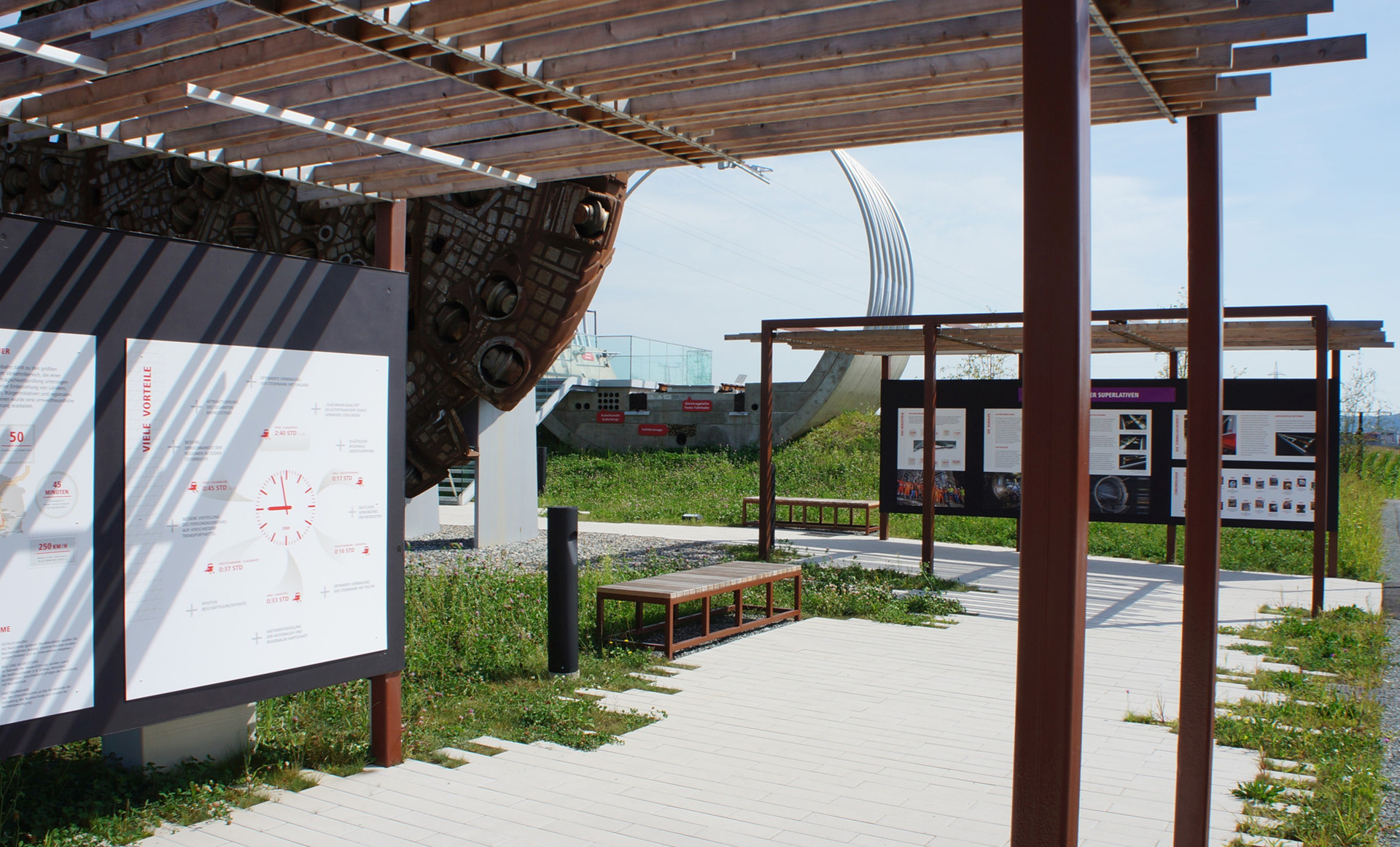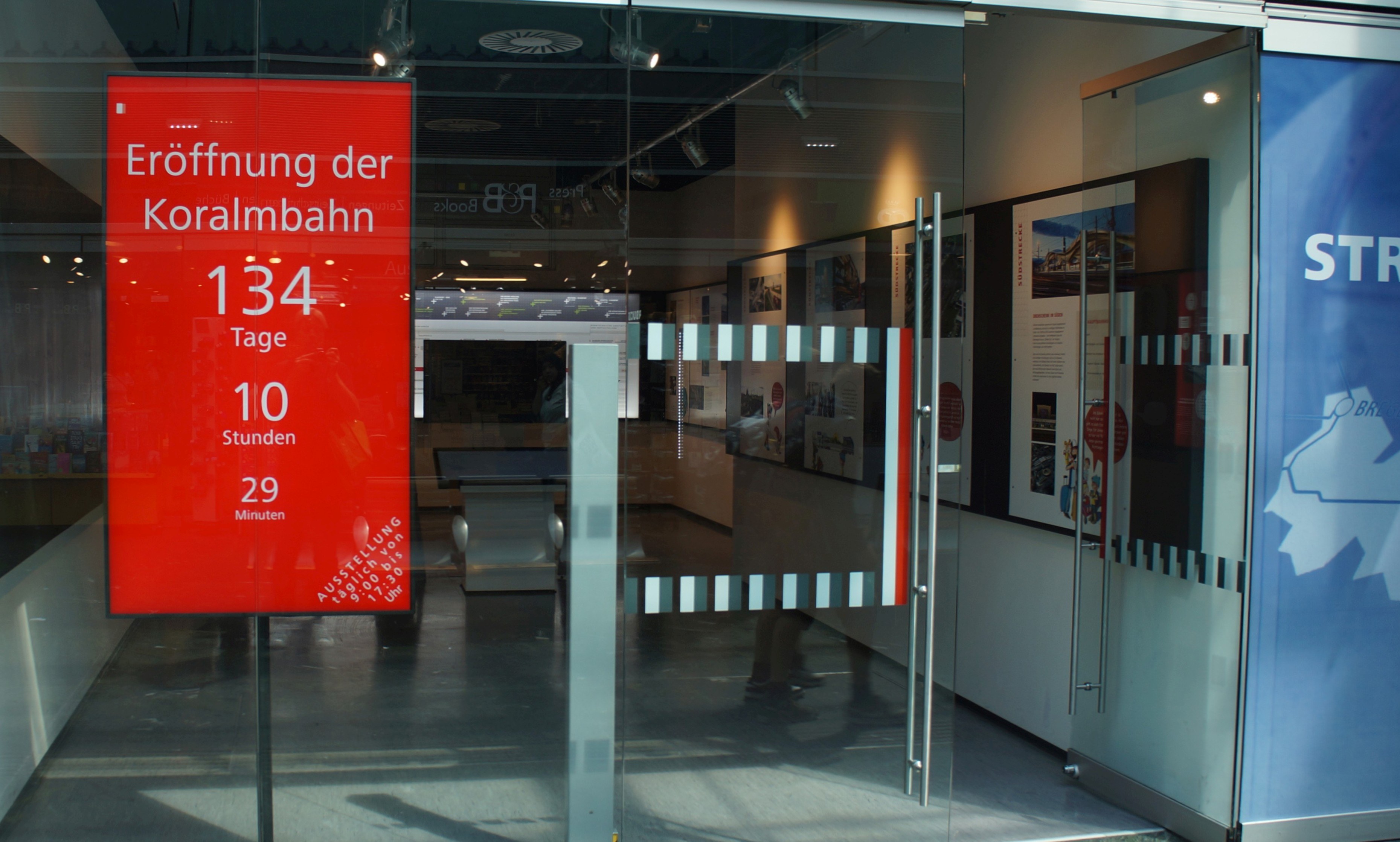 The railway track and tunnel Feldkirchen – Weitendorf (Flughafenast) is a part of the ÖBB Koralmbahn, an 127 km-long double-track, electrified, high-speed railway. It will connect the cities of Graz and Klagenfurt. In order to communicate the project to a broad public and the local population, a bigger exhibition was established.