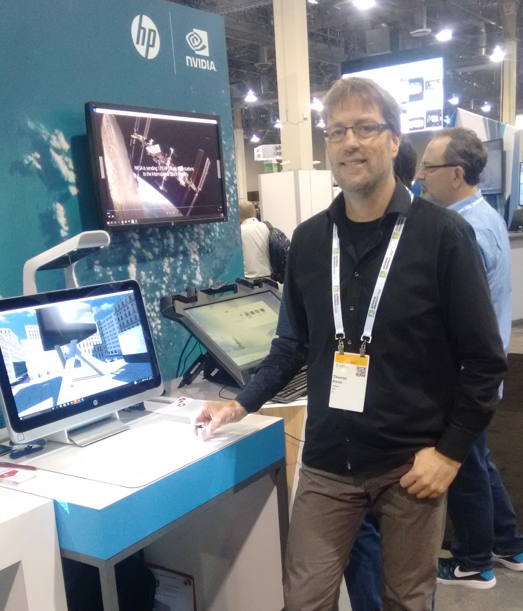 Walt Disney Studios has invited Thomas Kienzl to Los Angeles. The company presented edddison, a control device for real-time 3D visualization. They were one of 15 companies selected to do so at Siggraph in Boston. edddison is a mixed reality input device that allows users to virtually move through a 3D model. Any objects, such as models of buildings or vehicles, are displayed on the plate and digitally linked. The user can then move through the models using control elements. The user can actively influence the sequences and stay in the rooms at will.