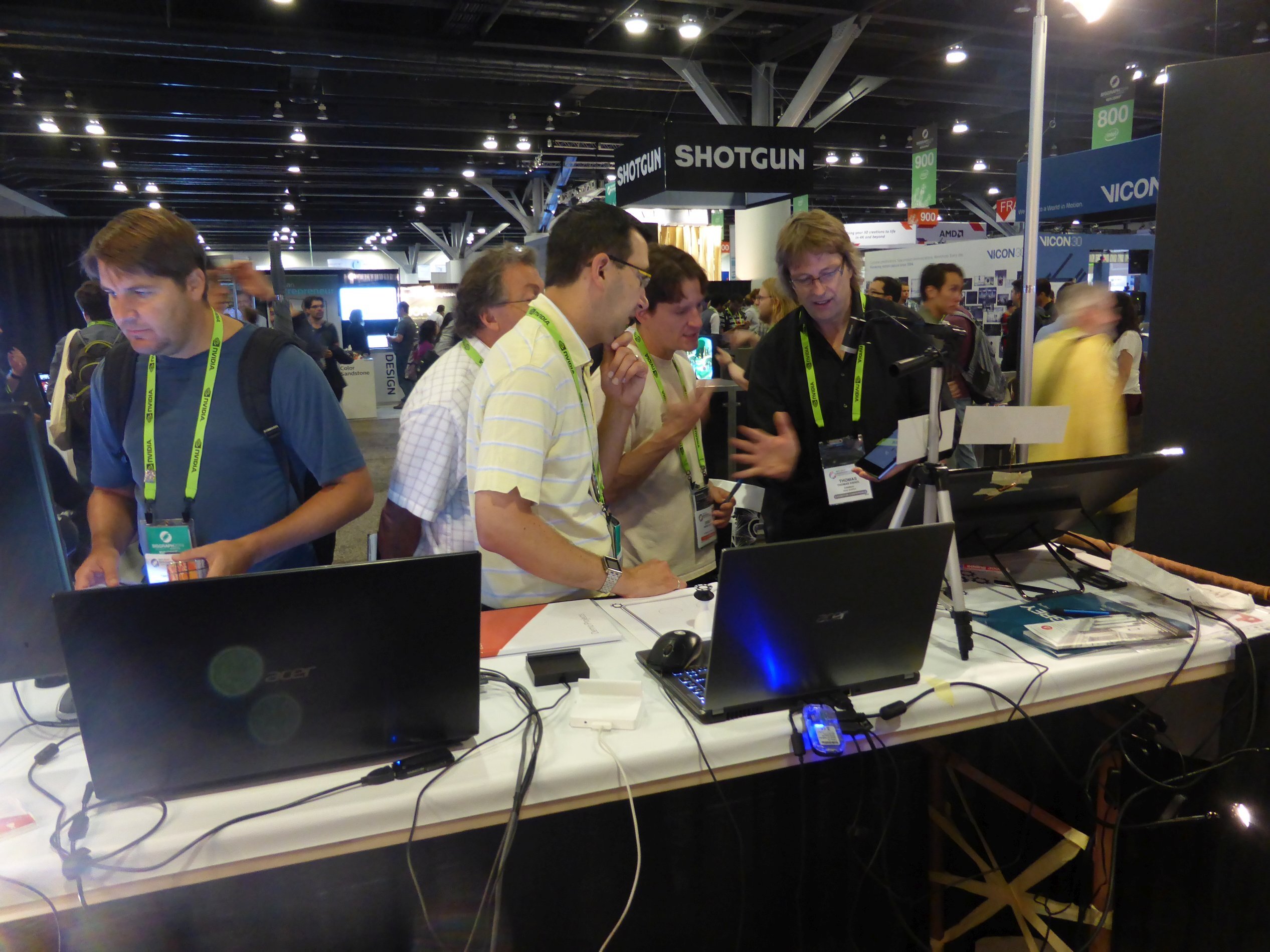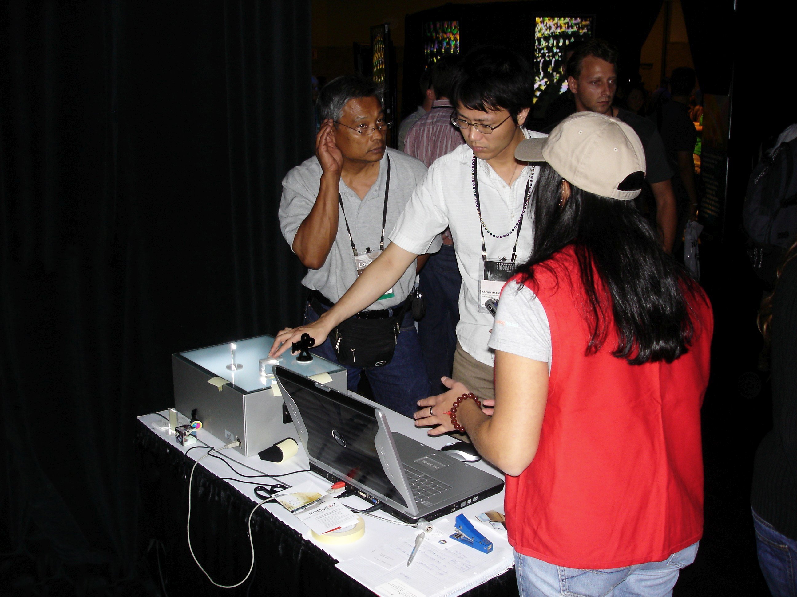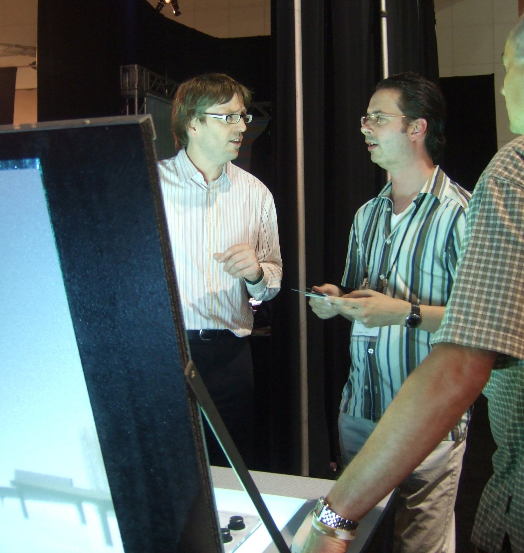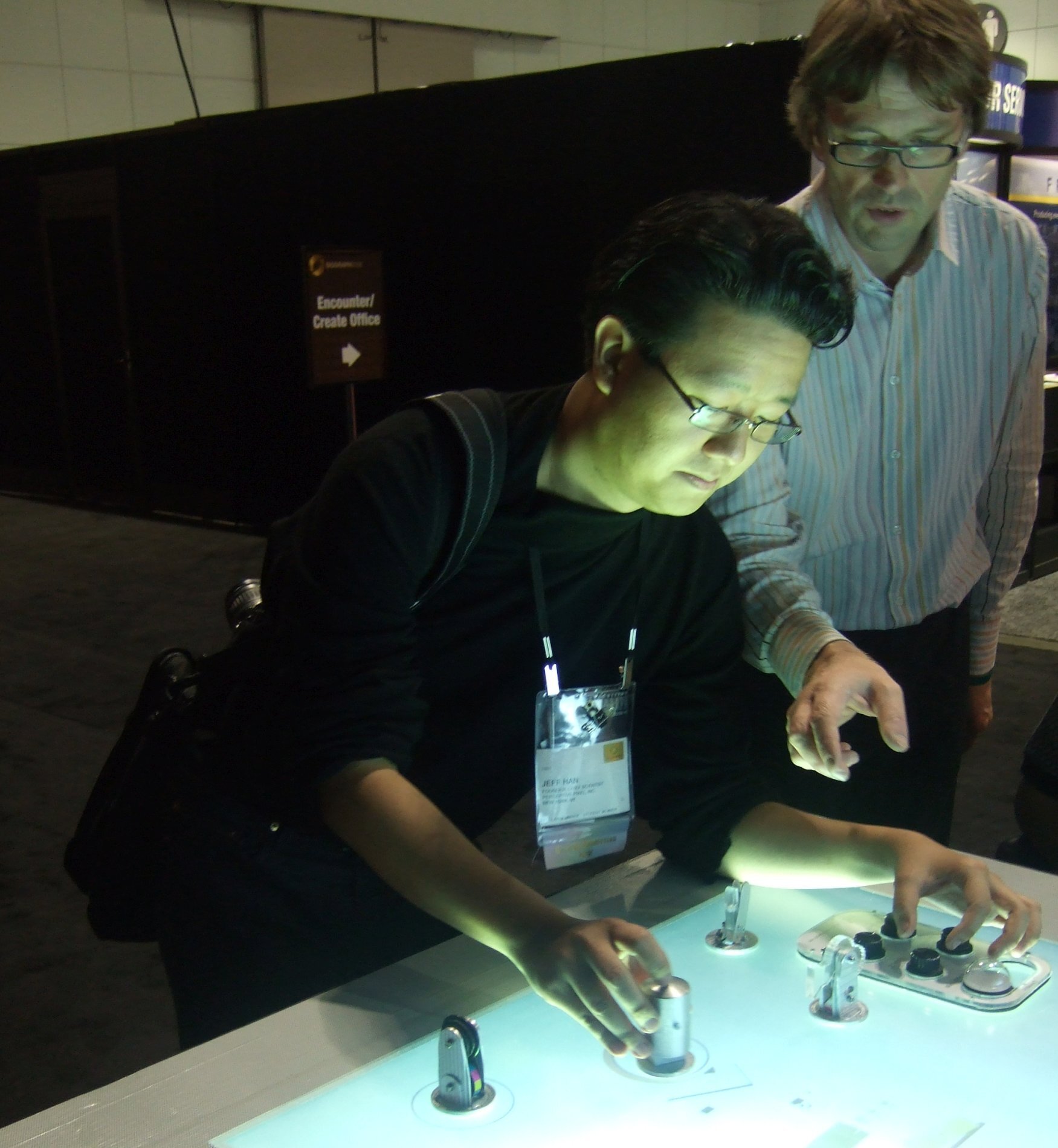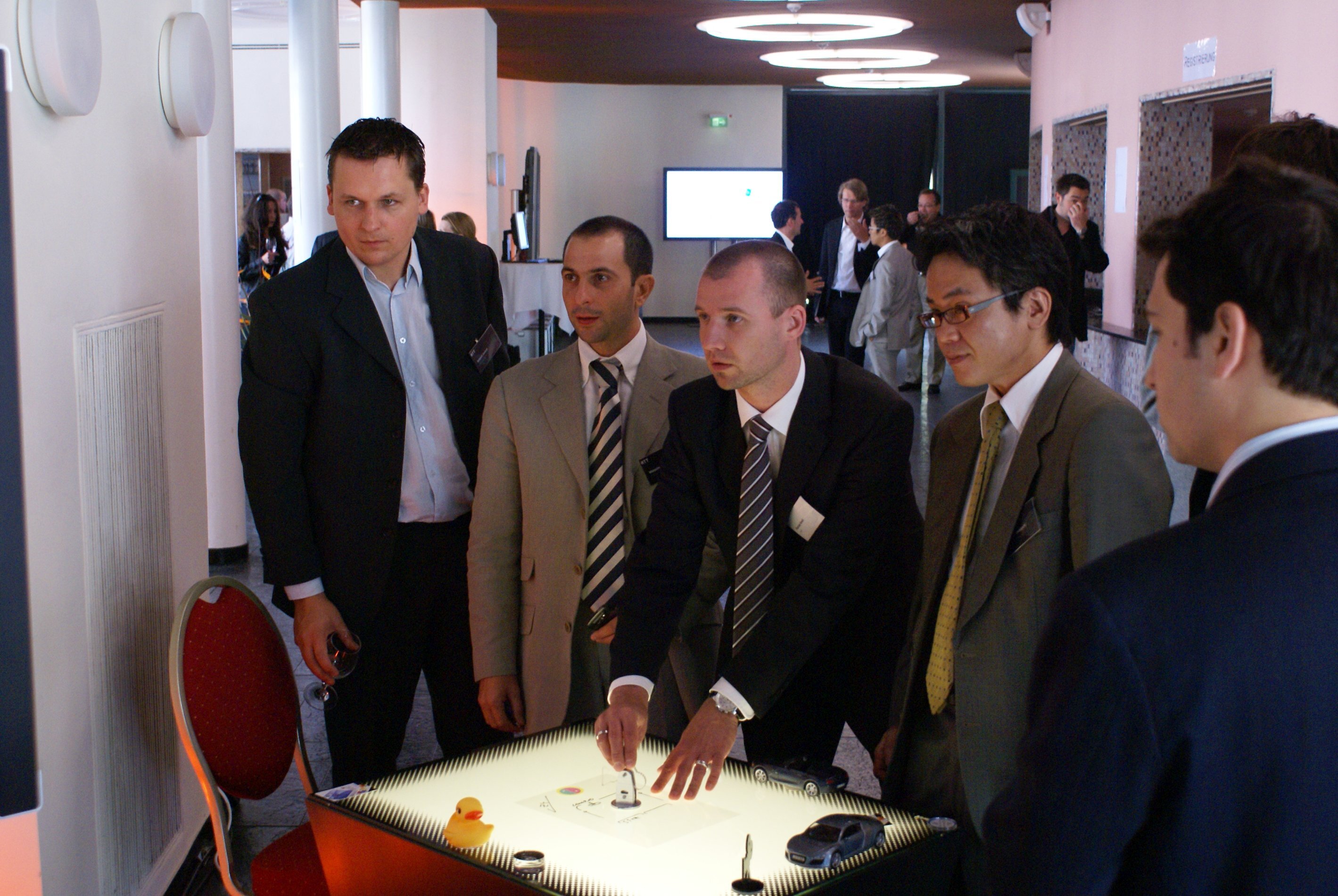 After developing the first edddison prototypes a question arises: how do we call attention to our brilliant invention around the world? The presentation at the worldwide leading conference and fair for computer graphics and interaction techniques, the Siggraph, was an excellent platform to introduce our development to an interested audience of professionals and potential customers. For example, we welcomed Professor Hiroshi Ishii (Director of the MIT Media Laboratory), Jeff Han, Jeff Kowalski (CTO of Autodesk) and many other prominent experts.