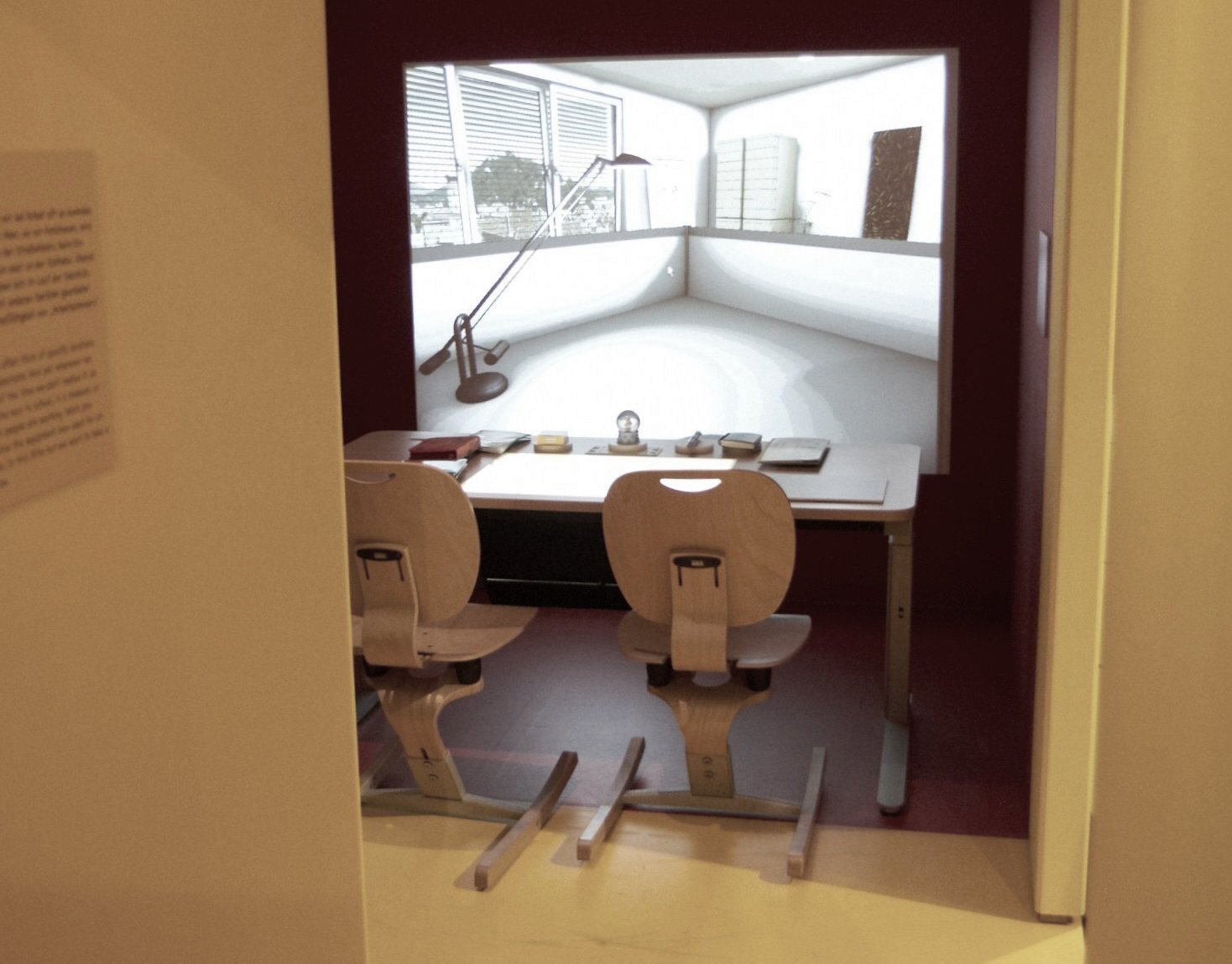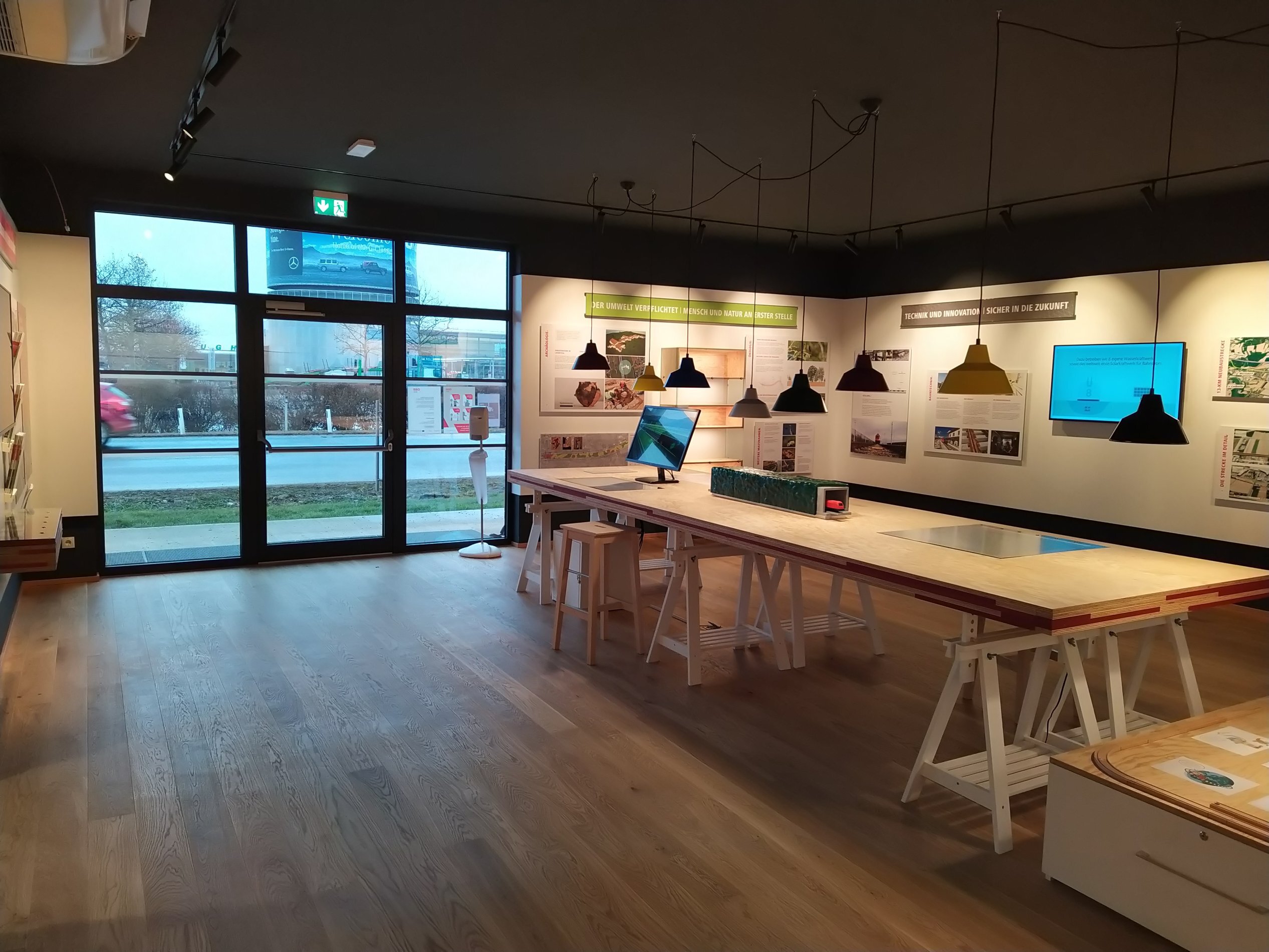 Requirement: As the room is not large, there should be no walls, fixtures or anything else to obstruct the view. Visitors should be able to see everything from every point. This is especially important for group tours, so that everyone has a good view of the presenter and what is being shown. A central table in the middle and walls with information around it - that's roughly how you could describe the exhibition in one sentence. A large table throughout is the strong exhibit of the exhibition. The room gets a centre, visitors have orientation and groups can be guided and led well. Visitors do not have to concentrate on many scattered exhibits in the room, but focus on what is important. In the end, visitors walk around the table, look around and understand - a nice idea, isn't it?