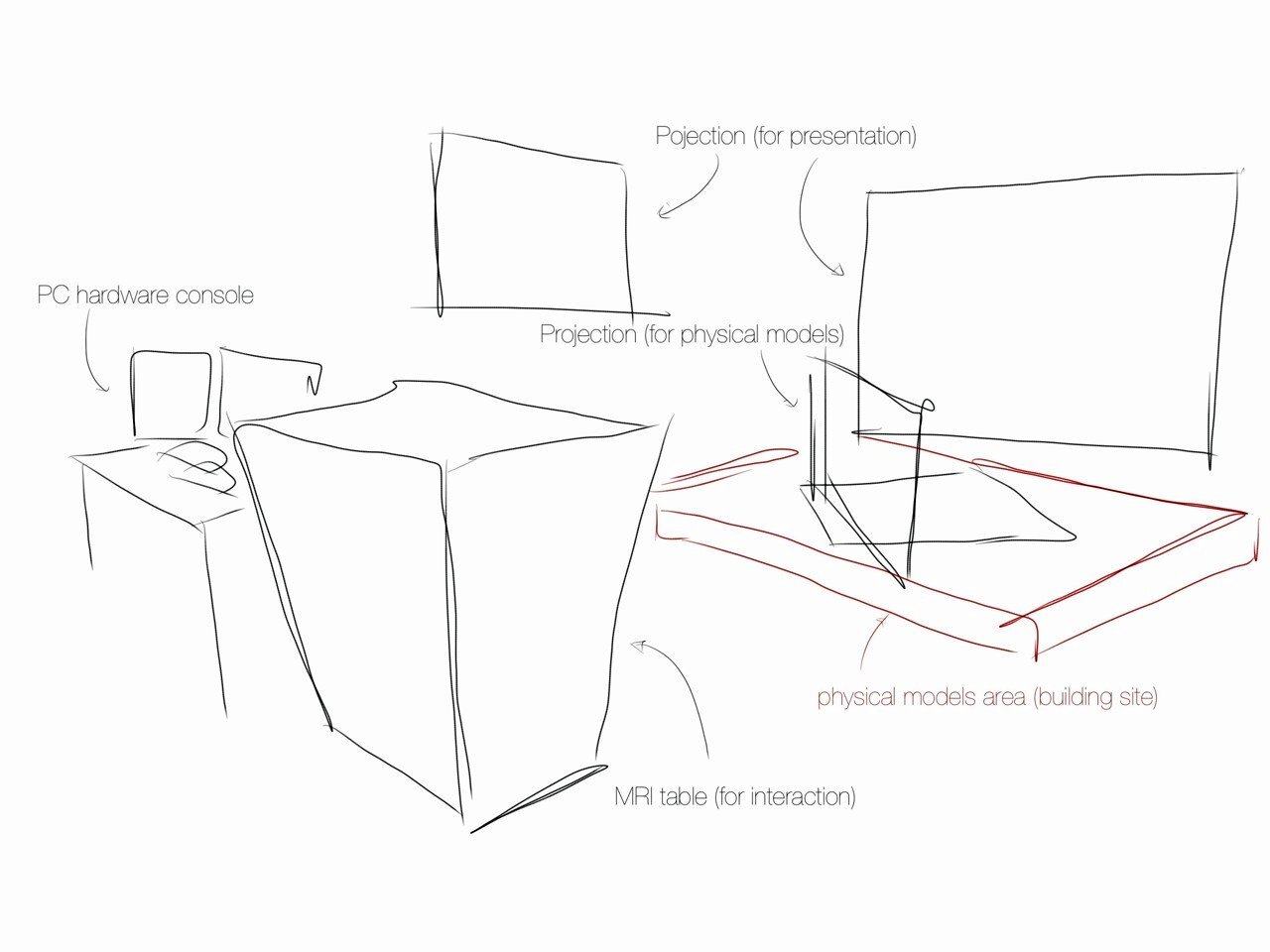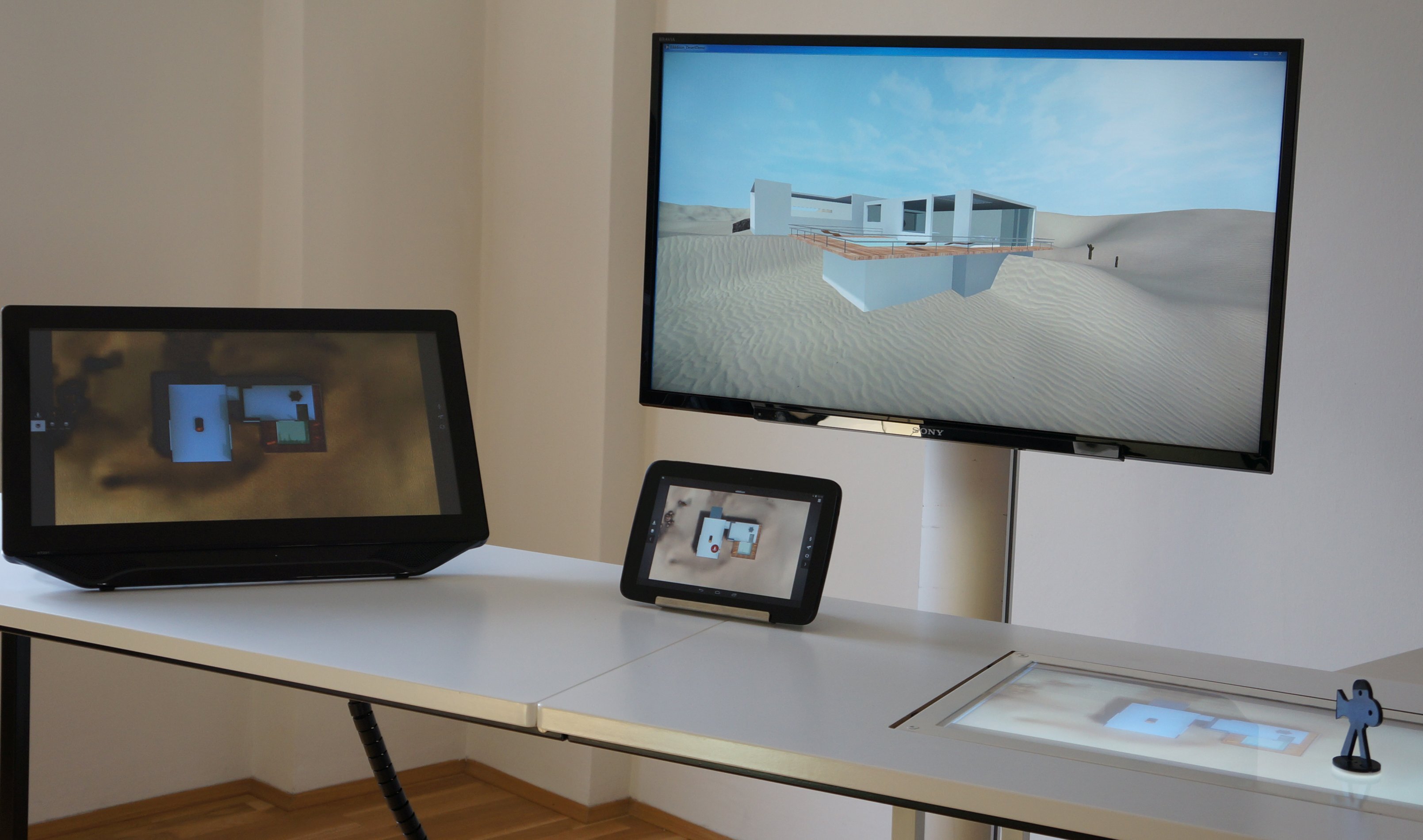 Digital Design means to augment virtual and physical, analog and digital objects seamlessly. The studio was an attempt to work with digital technologies on an analog scale model, to present designs using only projection and to keep the whole design task in one cloud space.