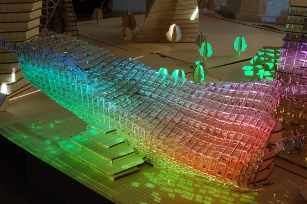 The basic idea of the studio: red hook was to bring together CAD technologies, the MRI projection table and an architectural scale model (on a very big scale) on the technical side and to do some high-rise, parametric, sustainable design on the architectural side. To achieve this, we worked with 13 students on the students' competition, “Timber in the city”