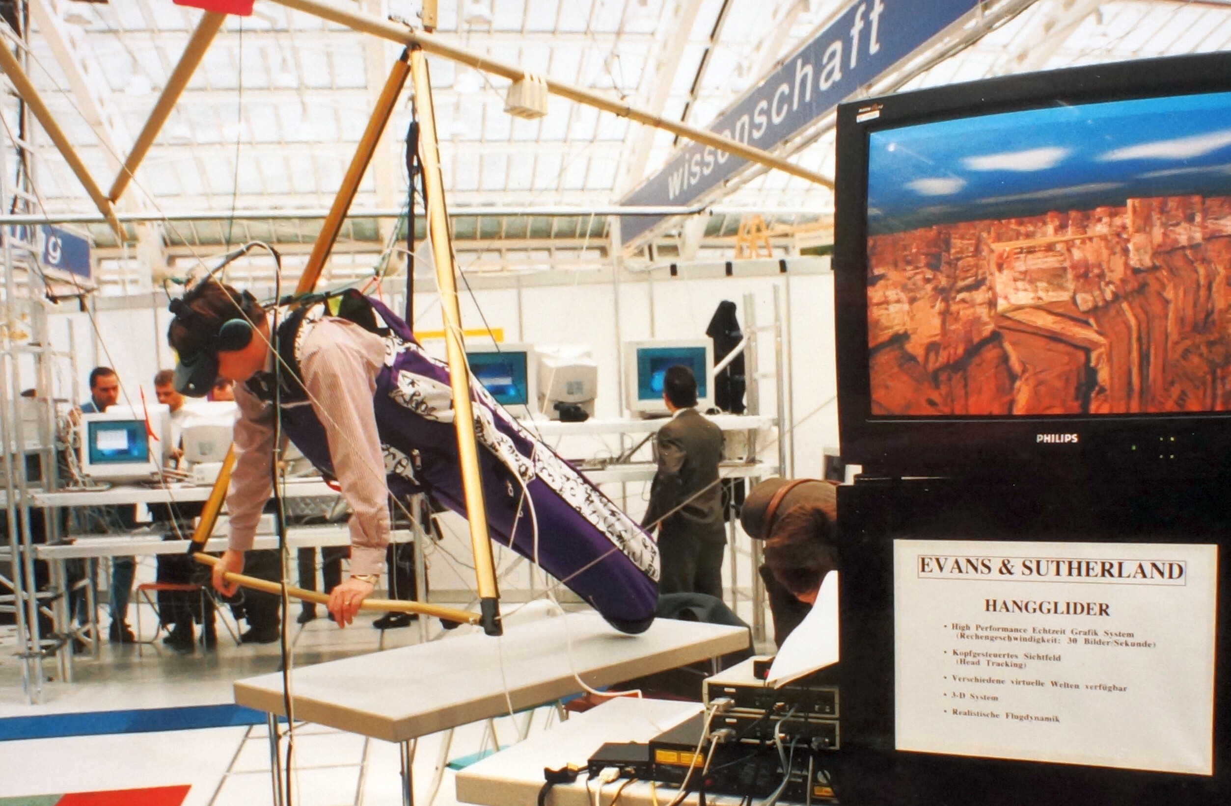 First generation Virtual Reality installations. Poor visual quality, heavy big computers, clumsy VR HMD, expensive technology - but already fascinating. Our first VR (Virtual Reality) Installation for the Ars Electronica Center.