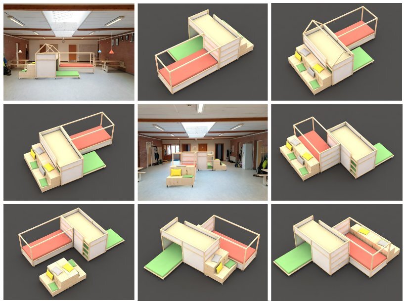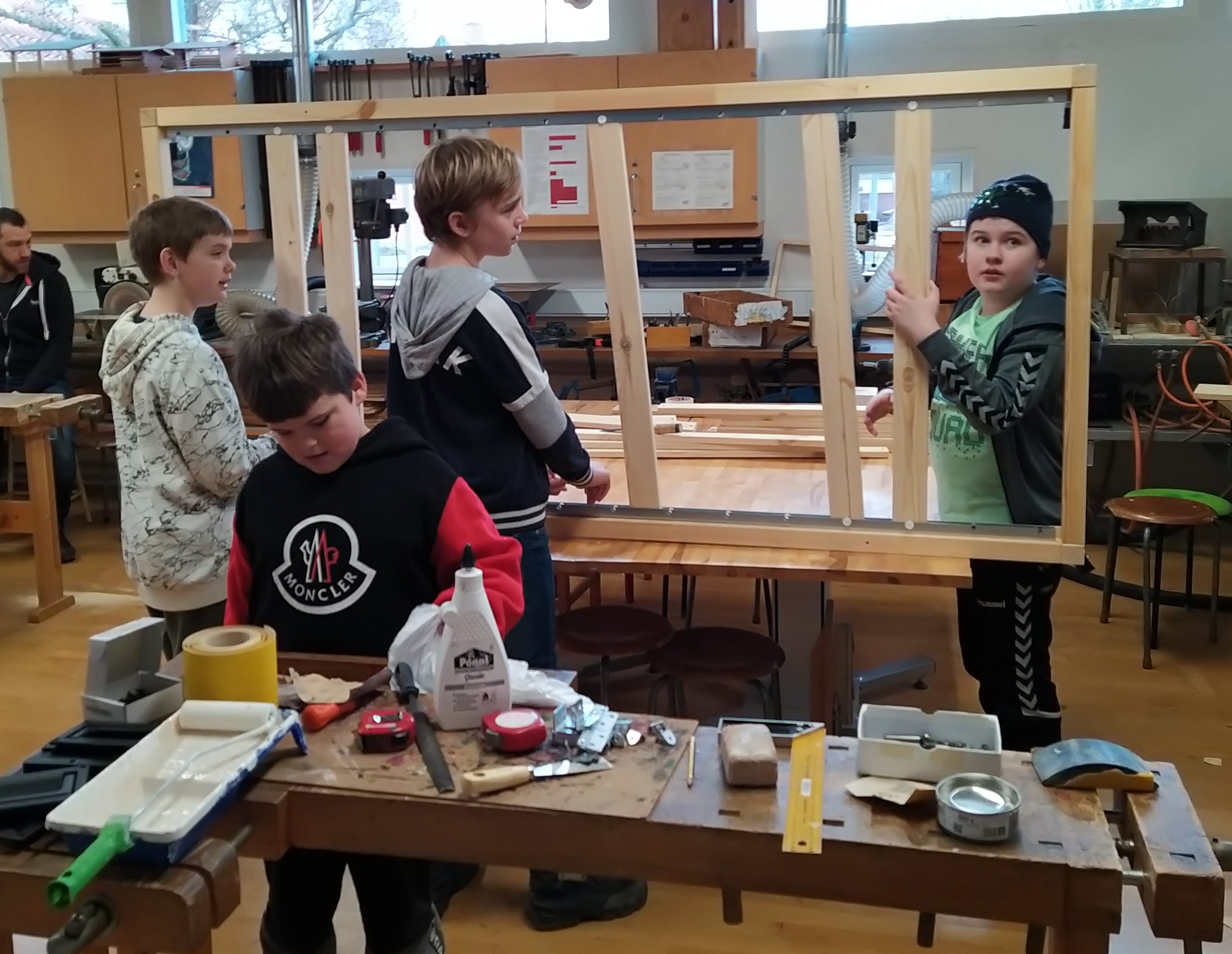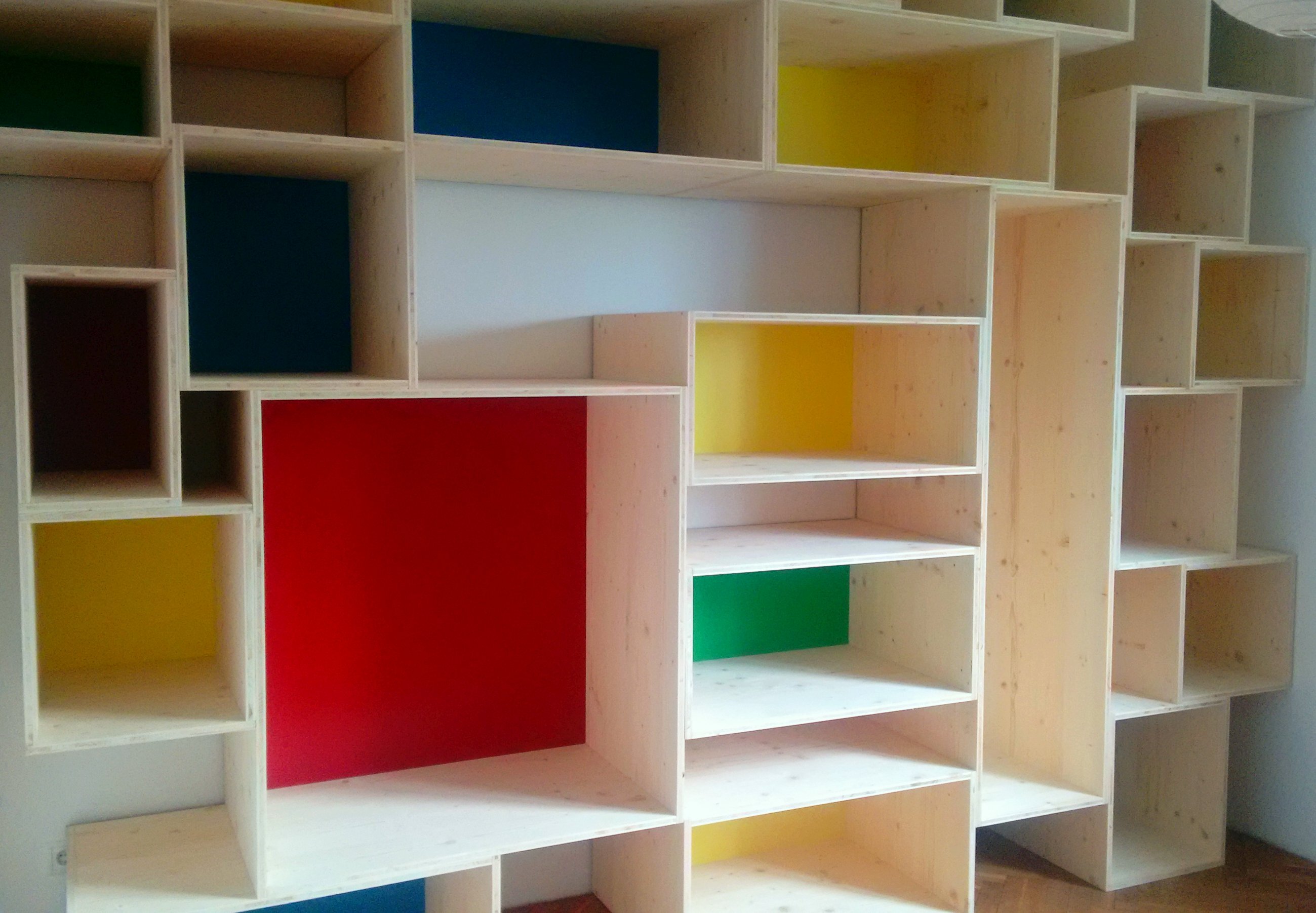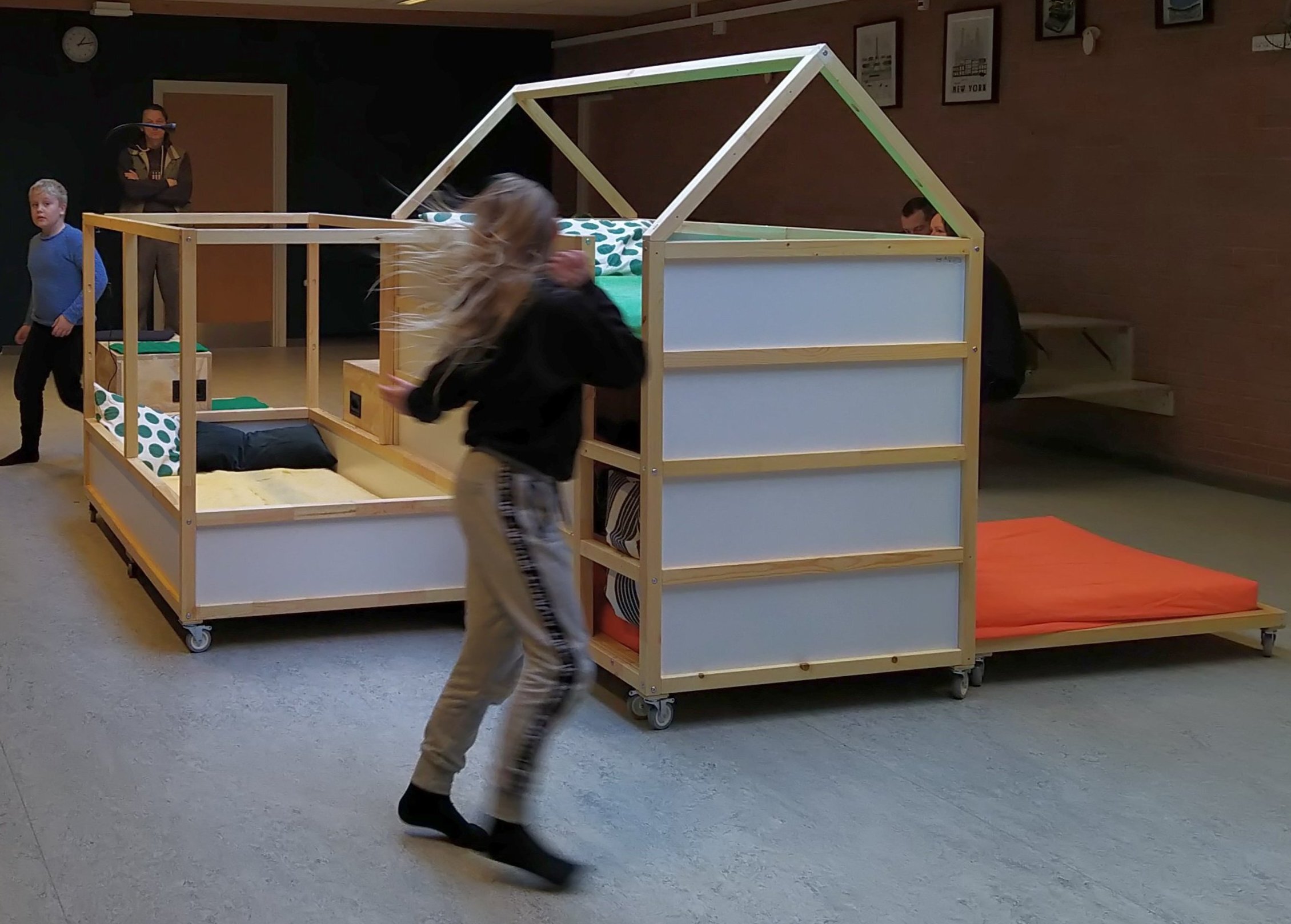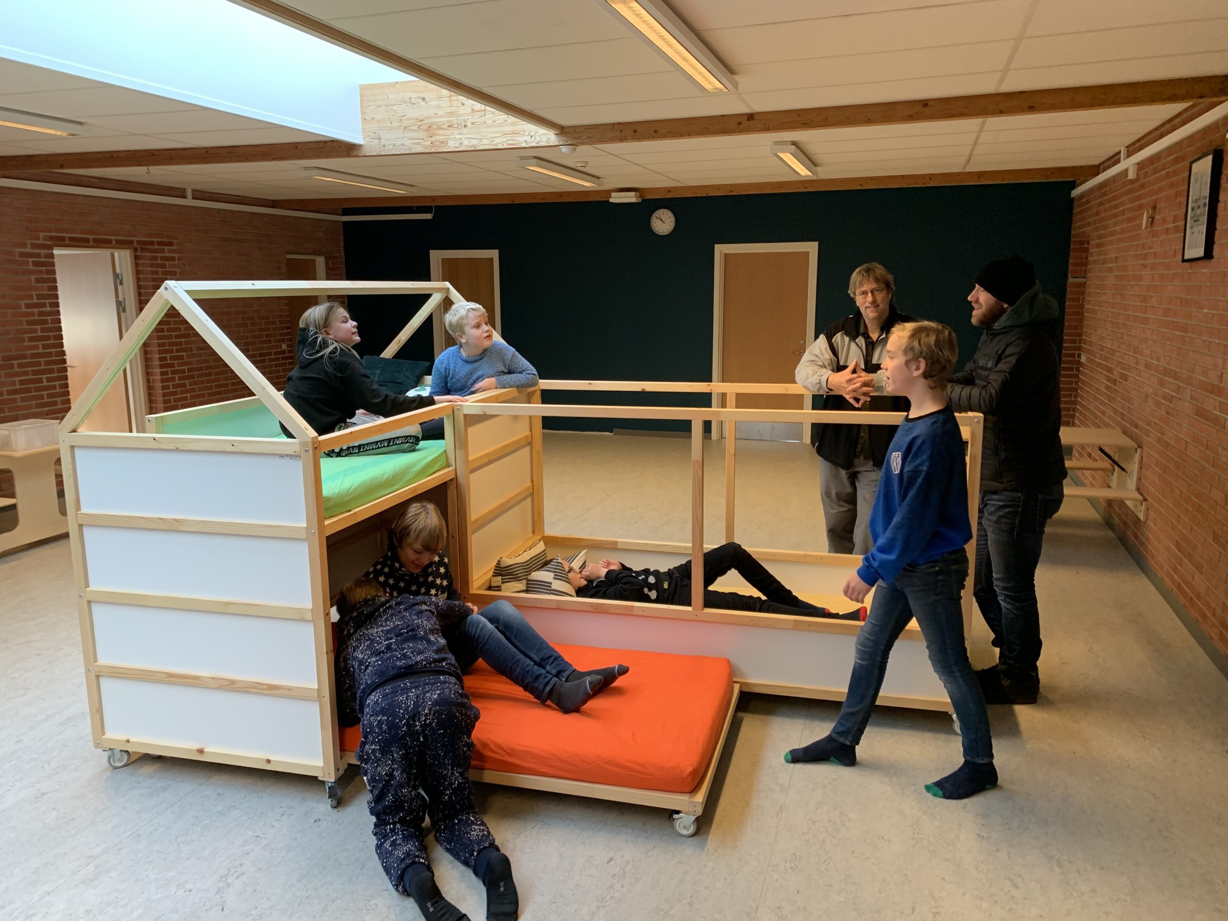 The task was to enliven the large empty space and allow the children to actively create. The framework conditions required simple and clever ideas. We decided to work partly with the principle of "Ikea hacking". This means that we selected furniture that was adapted after purchase. In this way, the task was fulfilled functionally while at the same time reducing costs. The design of the furniture allows the pupils to build and use variants on their own, which is done daily and with enthusiasm. Form a mobile movable "furniture-island" in the middle of the room, Caves to crawl into and hide, Frame to crawl around, reading stairs to listen and discuss, build them together in different ways.