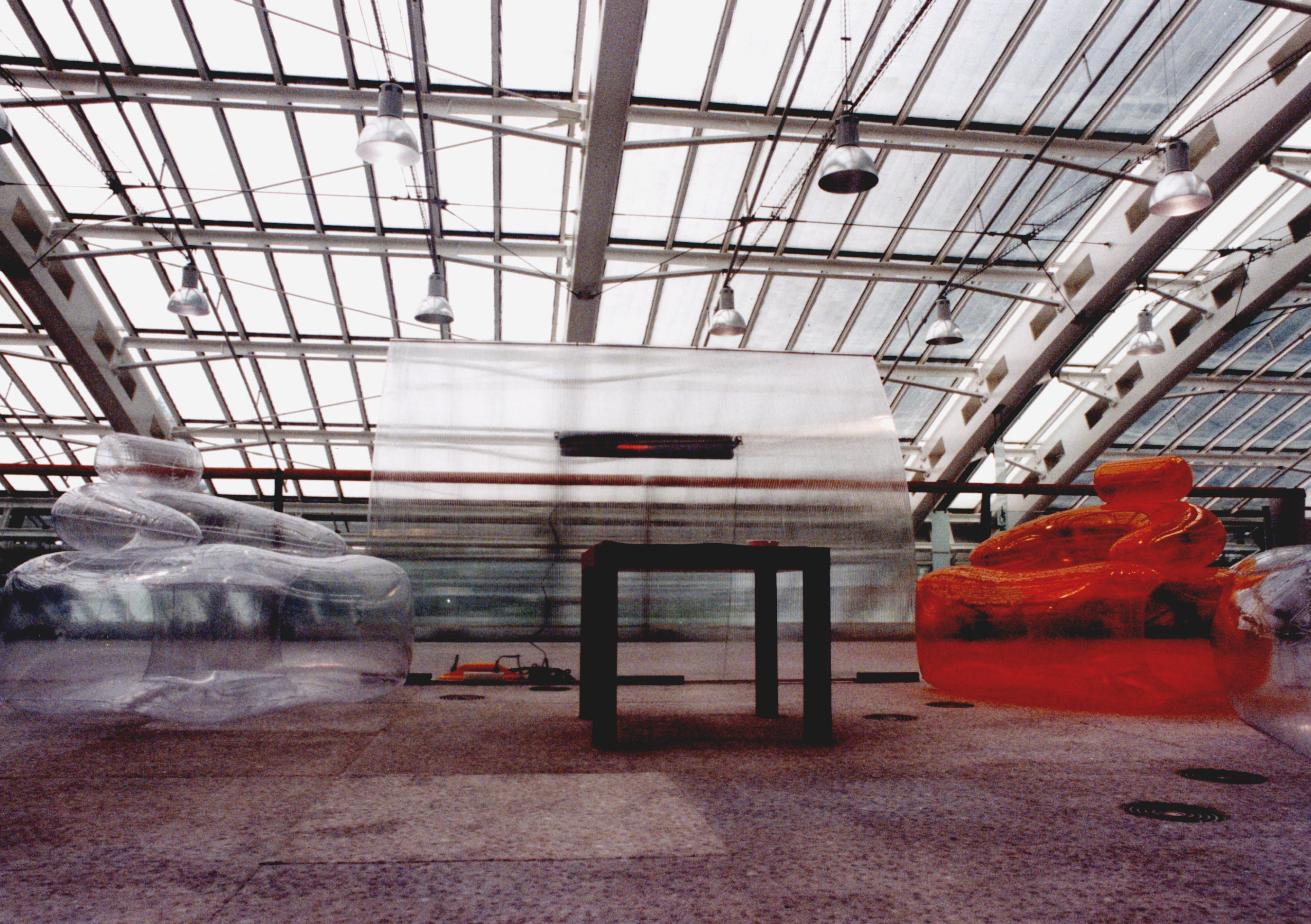 The event has a very large user area, there is an exceptionally generous space available. The goal is to provide this large space with strong accents and in no case to place small objects, these would appear too weak in this spatial situation and can not assert themselves.