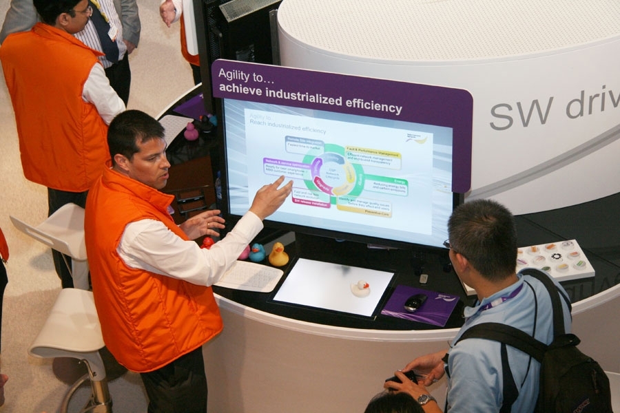 One possibility, to vividly present their competence and innovation at conferences and fairs, the company found a solution edddison. The interactive 3D-solution stimulates several sensory-levels of the user with optic, acoustic and haptic signals and invites them to interactively explore also complex technical contents. Thanks to the easy handling even untrained users are immediately able to simply and intuitively deal with the mobile-infrastructure issue. In order to visualize the capabilities of global experts in global service delivery centers we have been looking for a presentation system which would allow - to quickly and intuitively switch between different topics.