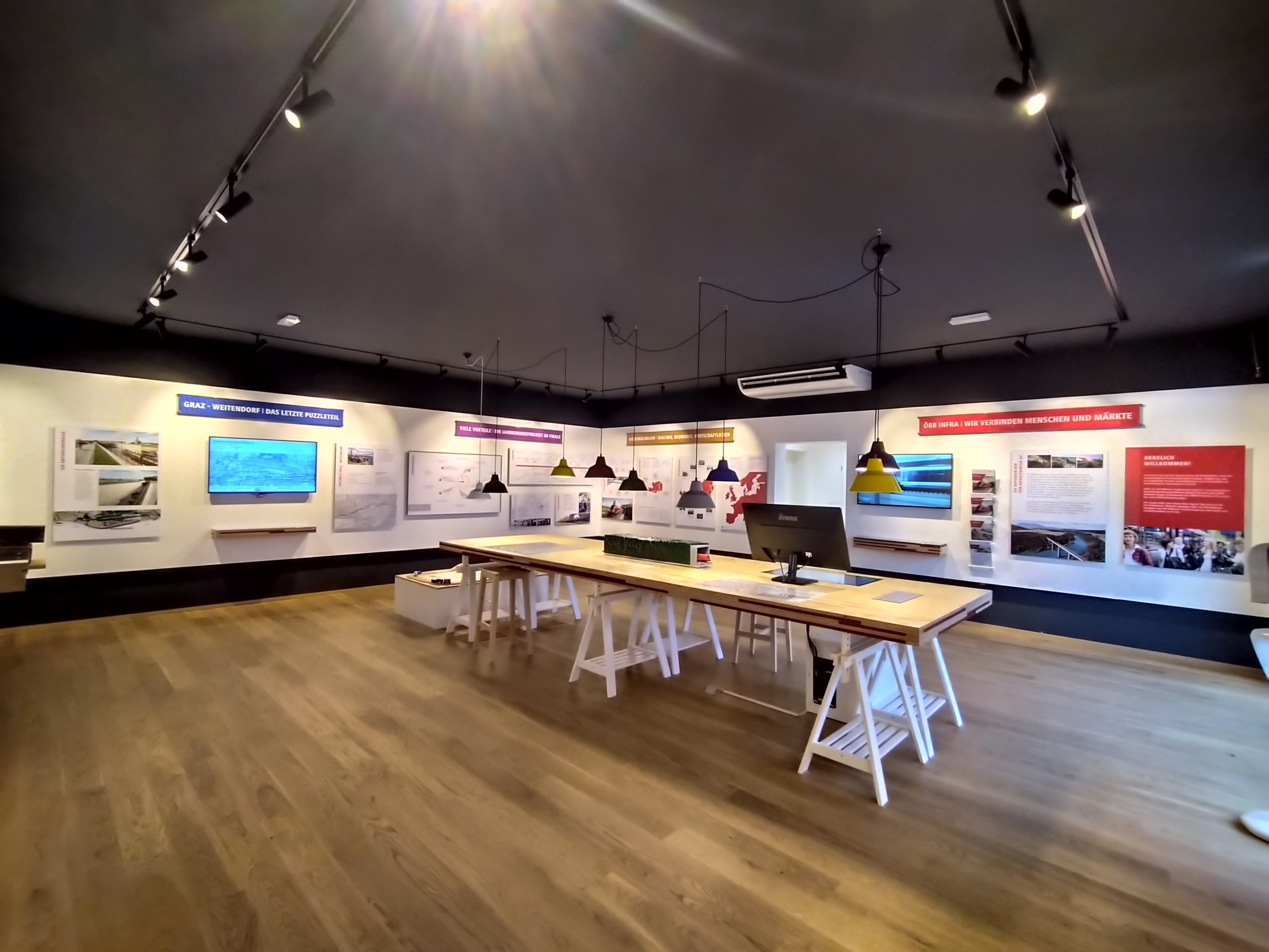 The information center, which was established in 2012, has been expanded with the addition of current digital media and new graphics. The focus is on the opening of the Koralm Railway in December 2025.